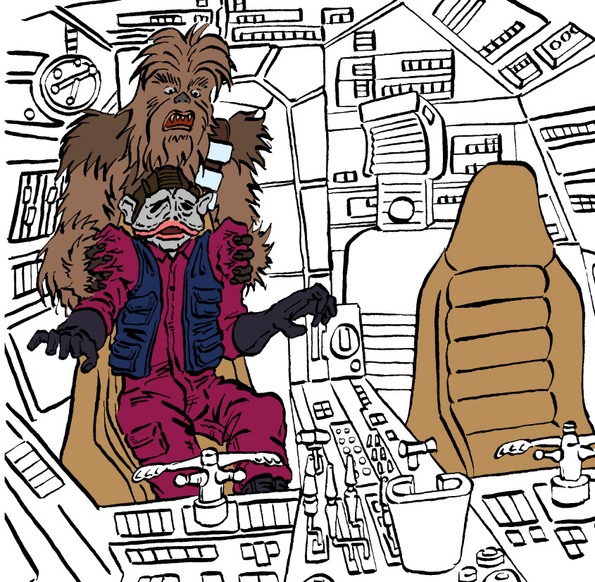 Note how I drew Chewie's hands since they're over top Nunb's arms. And that's how I typically do it... focus on the foreground. Now that Nunb was done, it was time to move on to Chewie (and any overlapping elements).