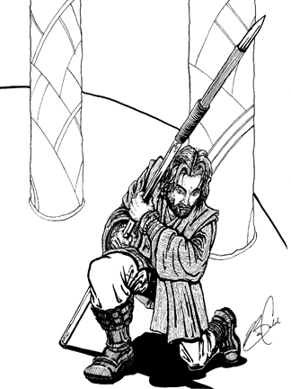 One of my patrons had a special request for three of the characters he reserved... he wanted the three of them to form a single picture inspired by the "Arena Scene" in AOTC. I enjoy a challenge, and was happy to oblige. I found that with just a few background elements for context, I was able to realize his vision. Here are the three drawings combined into a single piece. Click on each character for a full-sized version. |