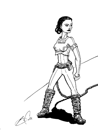 One of my patrons had a special request for three of the characters he reserved... he wanted the three of them to form a single picture inspired by the "Arena Scene" in AOTC. I enjoy a challenge, and was happy to oblige. I found that with just a few background elements for context, I was able to realize his vision. Here are the three drawings combined into a single piece. Click on each character for a full-sized version. |