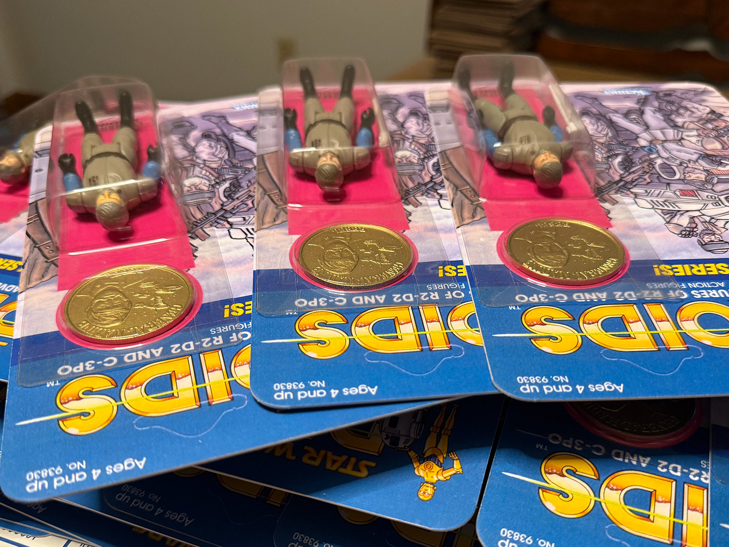 Please be aware, 3 of the bubbles for Madine were slightly warped around the coin dimple, and the tops don't lie perfectly flat against the cardback. They display perfectly fine and you can only really notice if you look at them from above, but I just figured I'd warn you that you have a 1-in-7 chance of getting one of those.