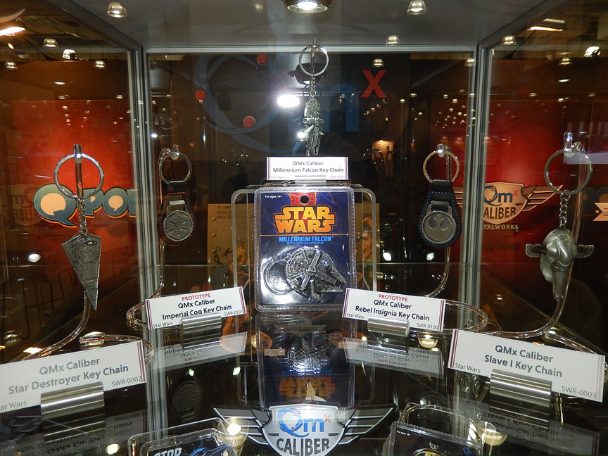 Next up was Qmx showing a selection of metal keychains. The Millennium Falcon, Slave 1 and Star Destroyer are already out and available. They did show two key fobs, an Imperial Cog and a Rebel Insignia, that are still in the prototype stage. They do have plans for EVII but surprise! Can’t talk about it. www.qmxonline.com