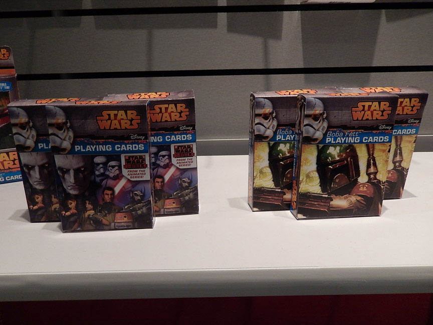 Cartamundi was there showing of their two new decks of cards coming out summer ’15, a Fett deck and a Rebels deck. Both will be available with or without collectible tins. They also showed product currently available. They too are working on EVII product, but don’t ask. www.cartamundiusa.com