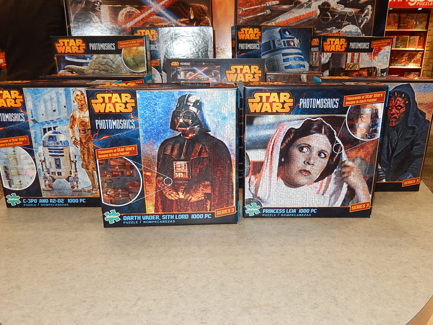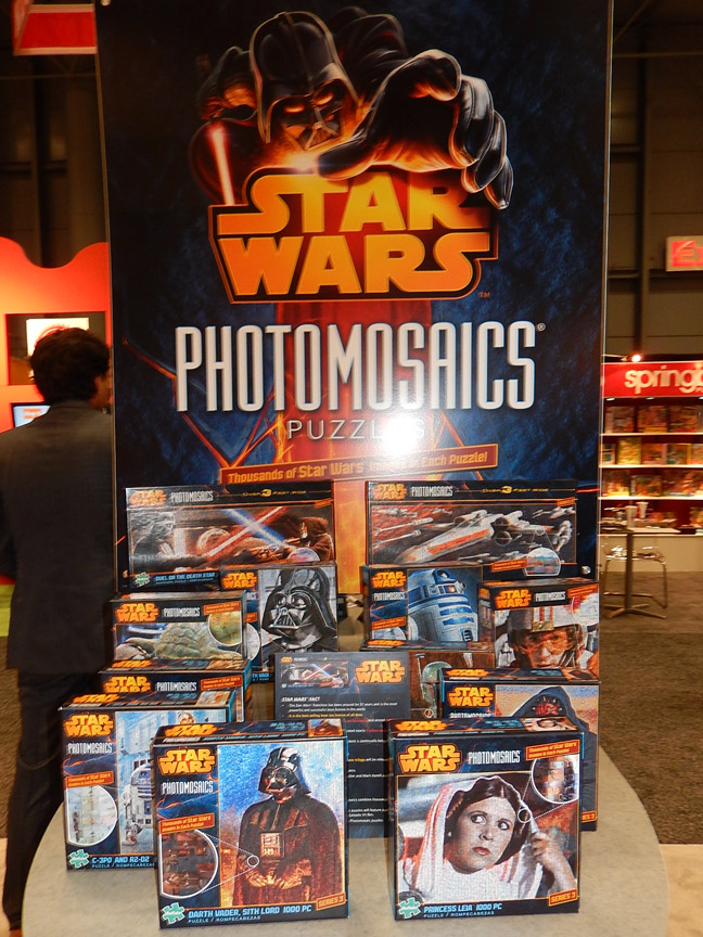 Puzzled by my reporting yet? You probably will be after the next two vendors. ;-) Buffalo Games & Puzzles was their showing off their PhotoMosaics line of puzzles. These, if you haven’t seen them yet, are puzzles of images made from thousands of tiny frames from the Star Wars movies. Series 3 is coming out Summer ’15 with 5 new images and Fett that is already out. And they are working on EVII but are waiting on Disney approval. www.buffalogames.com