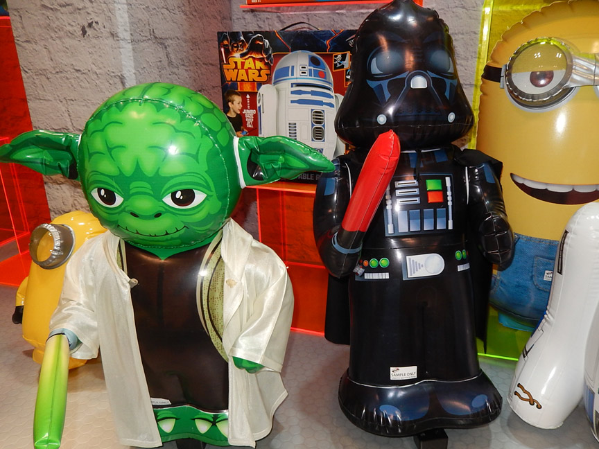 Next in line was Bladez Toyz with remote control inflatable toys. I’m sure you’ve seen the inflatable RC R2-D2 this past fall at Target. Well Bladez is rereleasing the R2-D2 but this time with sound. Coming summer/fall ’15 is an inflatable Yoda and an inflatable Darth Vader. The Yoda and Vader shown were early samples and may differ slightly. www.bladeztoyz.co.uk