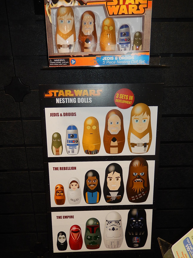 PPW Toys was there showing their PopTaters line, similar to Hasbro’s Mr. Potato Head. There are four characters available now, Vader, Yoda, Stormtrooper and R2-D2. They are also available as keychains. There is a Fett and C-3PO PopTaters coming in Summer ’15, and they announced a Slave Leia coming in the Fall ’15. They are also releasing three sets of nesting dolls, a Jedi & Droids, Rebellion and Empire themed sets. They are not for mass retail but should be found at specialty stores. www.ppwtoys.com
